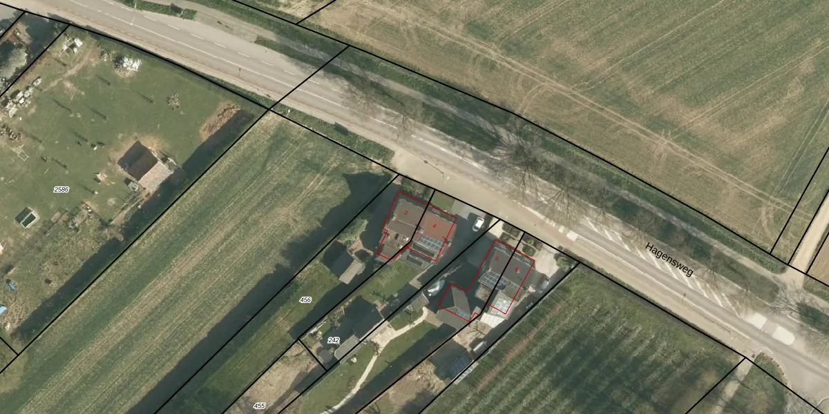 Hagensweg 3 is gelegen op kadastraal perceel NUT00L456. Deze kadastrale aanduiding is uniek en wordt gebruikt door het Kadaster om eigendomsrechten en andere zakelijke rechten vast te leggen. Het perceel maakt onderdeel uit van de kadastrale gemeente Nuth.