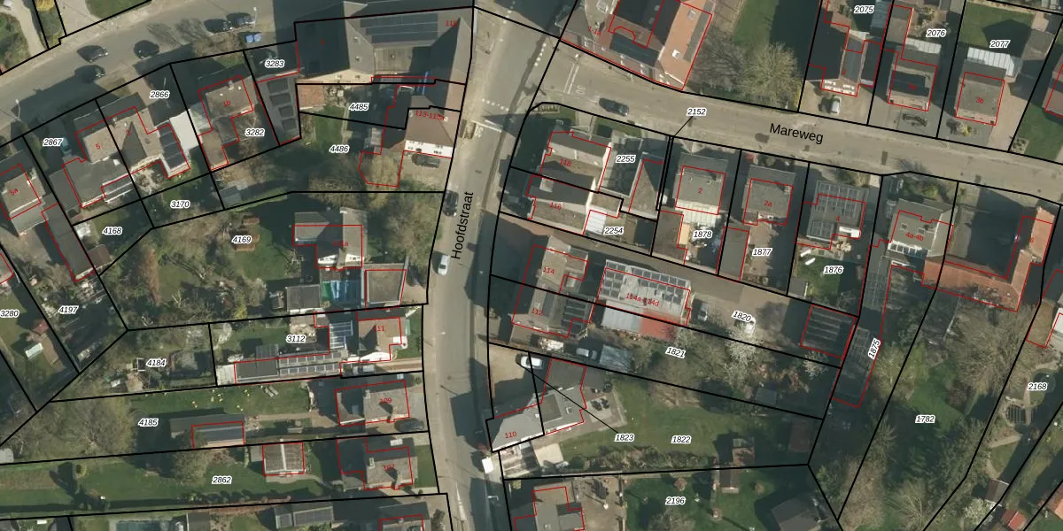 Het perceel waarop Hoofdstraat 114 staat heeft een oppervlakte van 770 m². Dit is een groot perceel. De perceeloppervlakte wordt geregistreerd door het Kadaster. Gedetailleerde informatie over de maten van dit perceel kunt u vinden in het rapport Kadastrale kaart met maatvoering van Hoofdstraat 114.