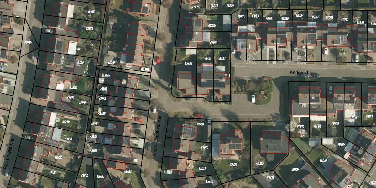 Het perceel waarop Kerkveld 1 staat heeft een oppervlakte van 320 m². Dit is een groot perceel. De perceeloppervlakte wordt geregistreerd door het Kadaster. Gedetailleerde informatie over de maten van dit perceel kunt u vinden in het rapport Kadastrale kaart met maatvoering van Kerkveld 1.