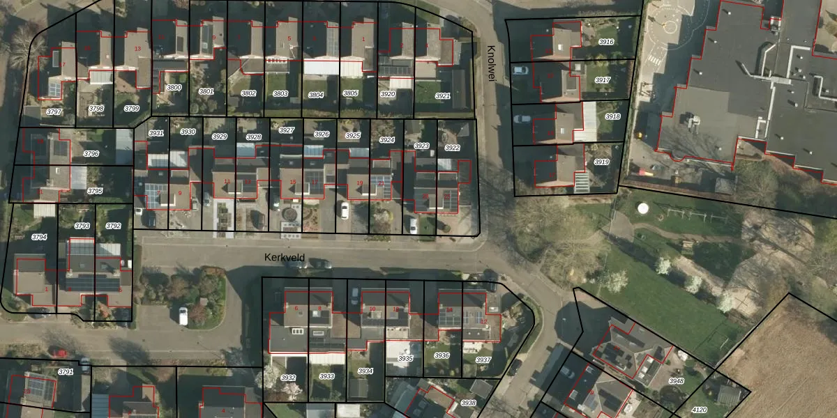 Het perceel waarop Kerkveld 23 staat heeft een oppervlakte van 222 m². Dit is een middelgroot perceel. De perceeloppervlakte wordt geregistreerd door het Kadaster. Gedetailleerde informatie over de maten van dit perceel kunt u vinden in het rapport Kadastrale kaart met maatvoering van Kerkveld 23.