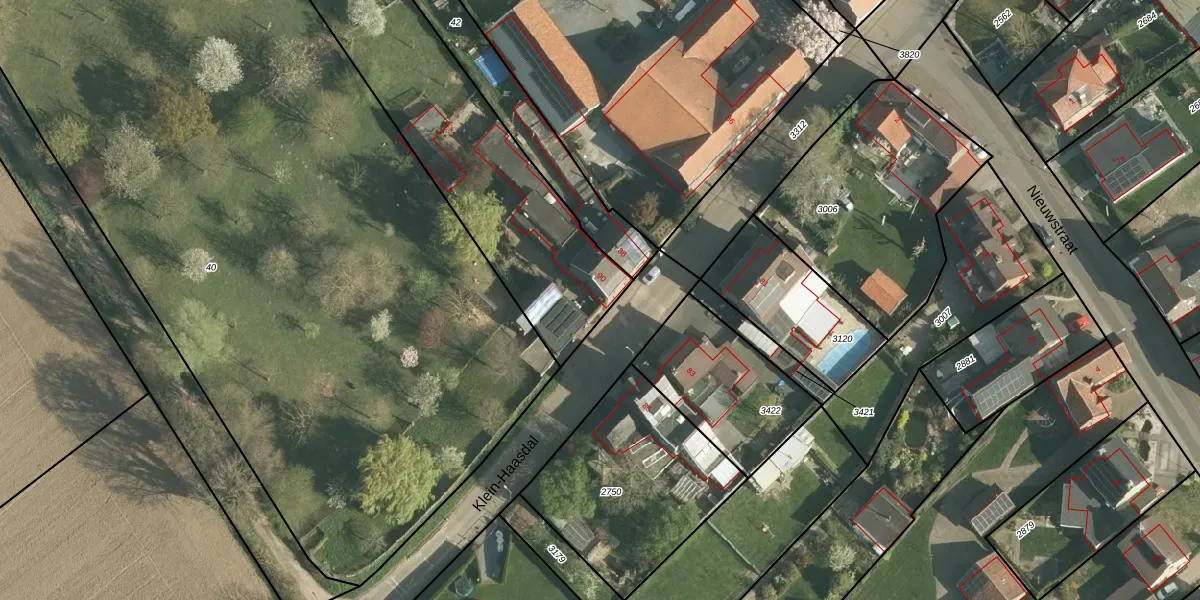 Het perceel waarop Klein-Haasdal 90 staat heeft een oppervlakte van 1585 m². Dit is een zeer groot perceel. De perceeloppervlakte wordt geregistreerd door het Kadaster. Gedetailleerde informatie over de maten van dit perceel kunt u vinden in het rapport Kadastrale kaart met maatvoering van Klein-Haasdal 90.