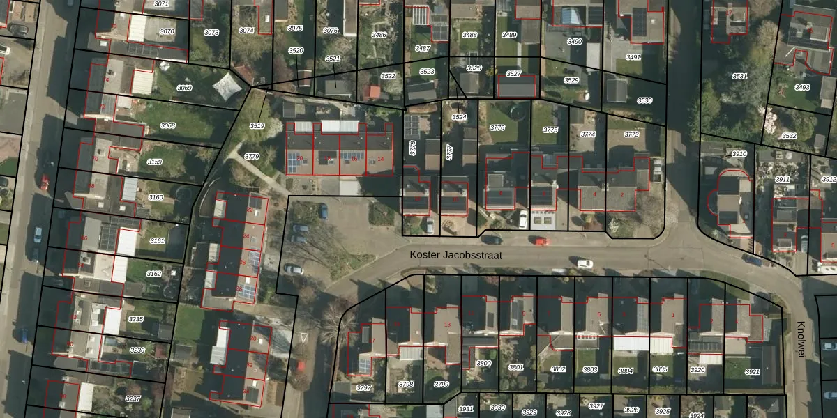 Het perceel waarop Koster Jacobsstraat 12 staat heeft een oppervlakte van 285 m². Dit is een middelgroot perceel. De perceeloppervlakte wordt geregistreerd door het Kadaster. Gedetailleerde informatie over de maten van dit perceel kunt u vinden in het rapport Kadastrale kaart met maatvoering van Koster Jacobsstraat 12.