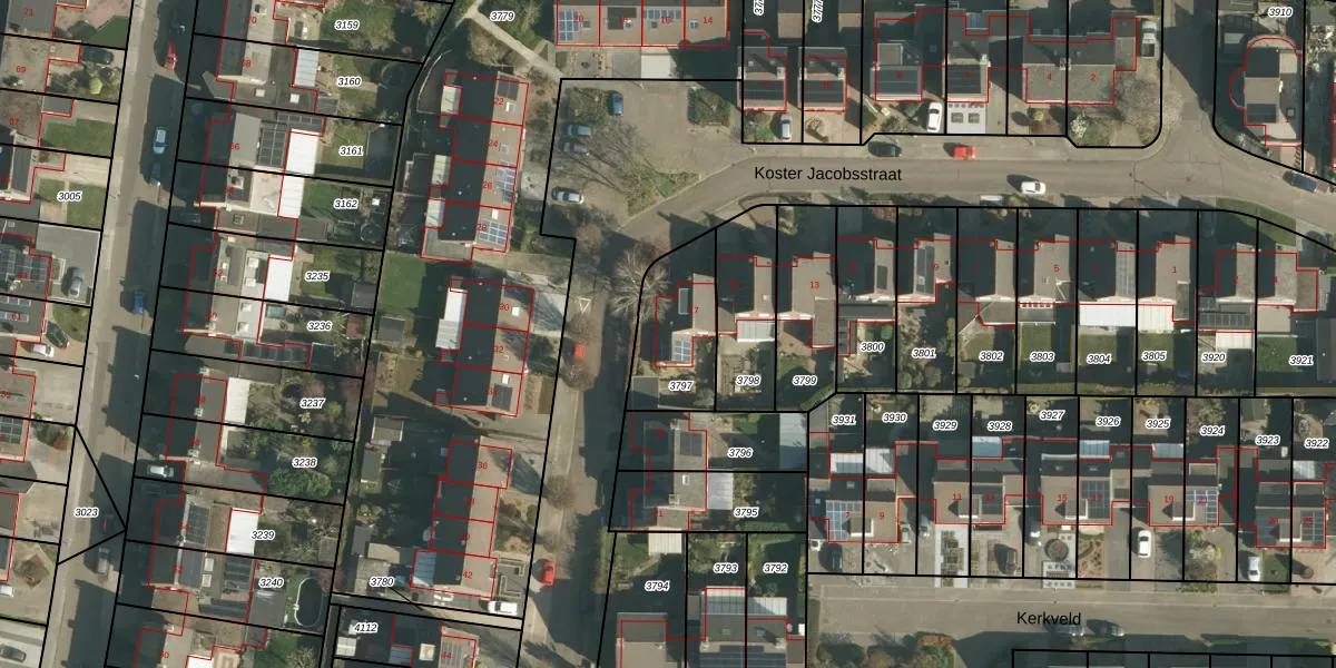 Gebruik de zoekbalk of klik op een perceel voor informatie over de adressen binnen dit perceel.