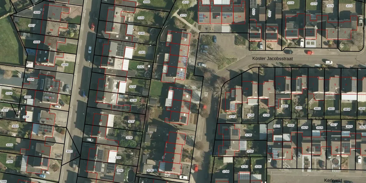 Het perceel waarop Koster Jacobsstraat 30 staat heeft een oppervlakte van 3145 m². Dit is een zeer groot perceel. De perceeloppervlakte wordt geregistreerd door het Kadaster. Gedetailleerde informatie over de maten van dit perceel kunt u vinden in het rapport Kadastrale kaart met maatvoering van Koster Jacobsstraat 30.