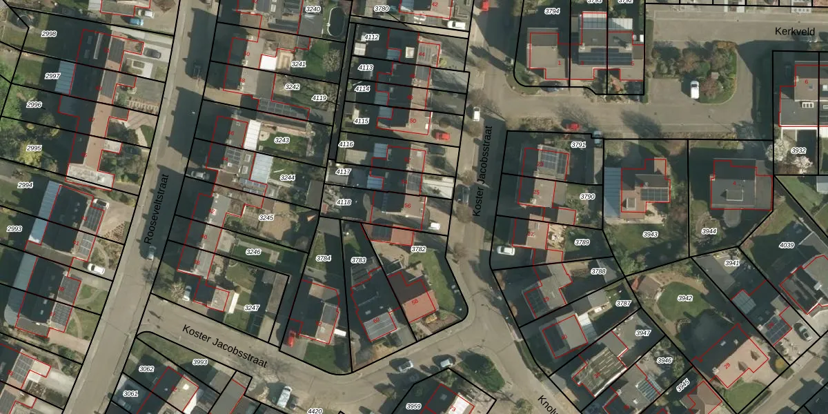 Koster Jacobsstraat 56 is gelegen op kadastraal perceel SMT00A4118. Deze kadastrale aanduiding is uniek en wordt gebruikt door het Kadaster om eigendomsrechten en andere zakelijke rechten vast te leggen. Het perceel maakt onderdeel uit van de kadastrale gemeente Schimmert.