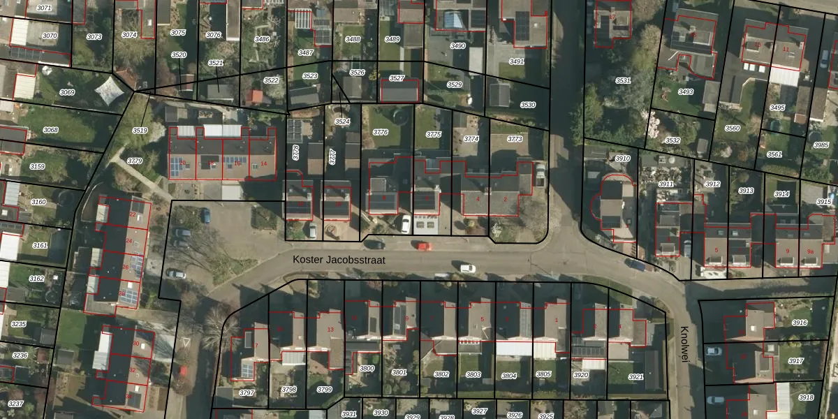 Koster Jacobsstraat 6 is gelegen op kadastraal perceel SMT00A3775. Deze kadastrale aanduiding is uniek en wordt gebruikt door het Kadaster om eigendomsrechten en andere zakelijke rechten vast te leggen. Het perceel maakt onderdeel uit van de kadastrale gemeente Schimmert.