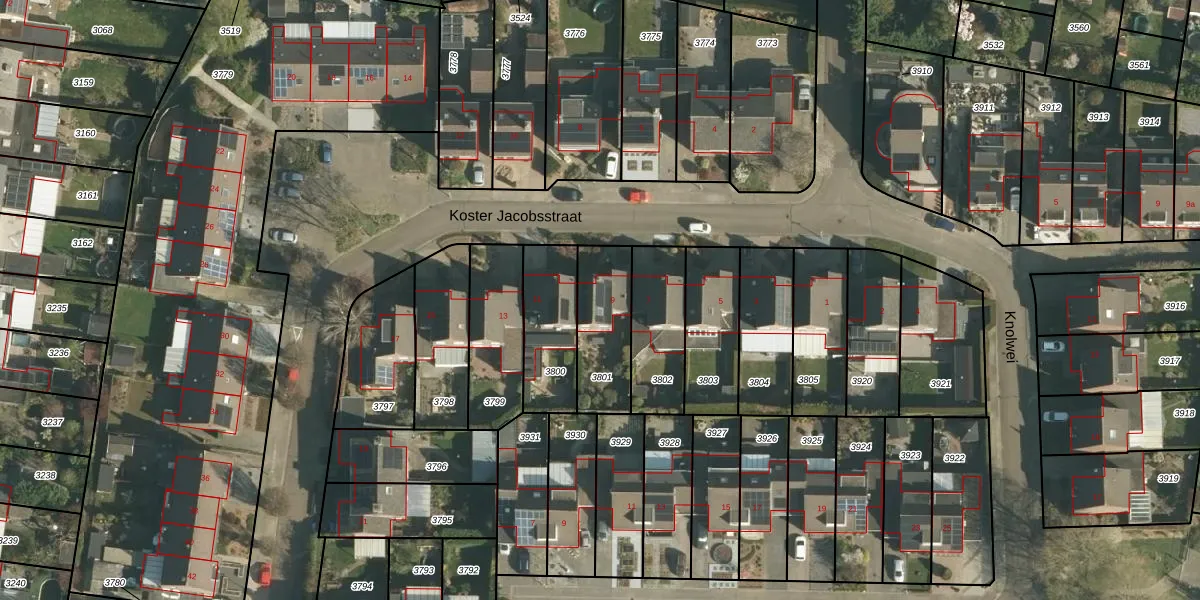 Koster Jacobsstraat 9 is gelegen op kadastraal perceel SMT00A3801. Deze kadastrale aanduiding is uniek en wordt gebruikt door het Kadaster om eigendomsrechten en andere zakelijke rechten vast te leggen. Het perceel maakt onderdeel uit van de kadastrale gemeente Schimmert.