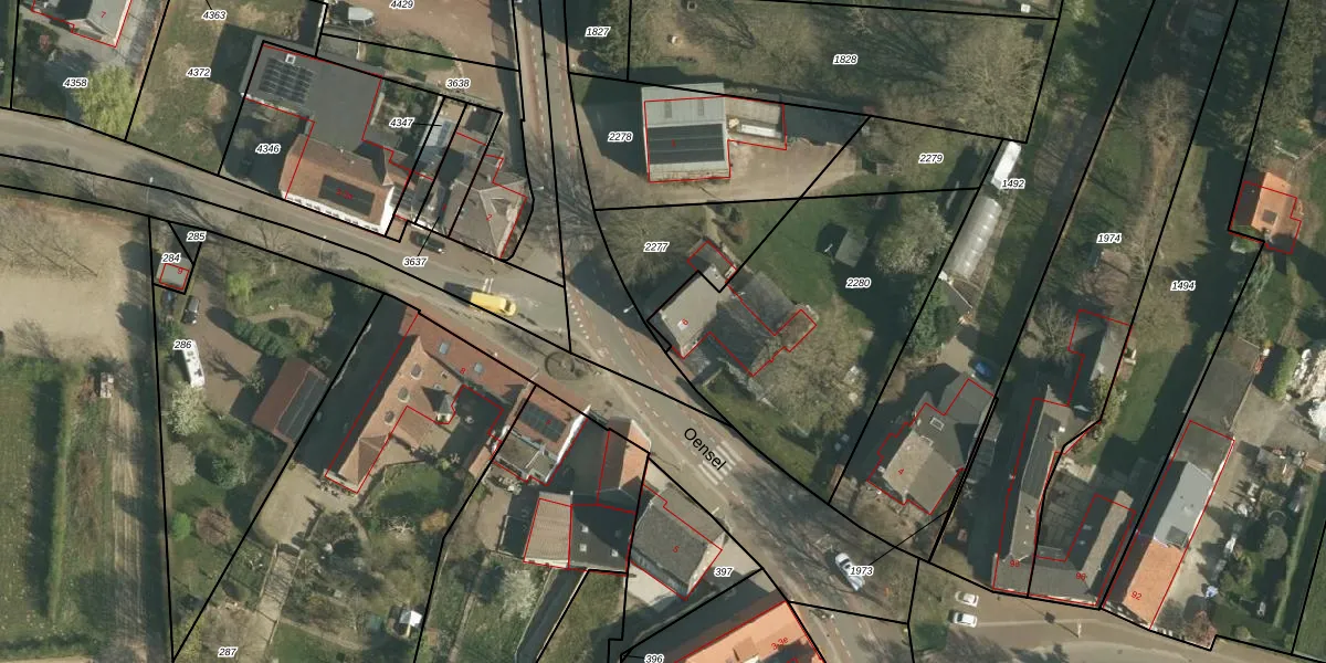 Het perceel waarop Oensel 6 staat heeft een oppervlakte van 1225 m². Dit is een zeer groot perceel. De perceeloppervlakte wordt geregistreerd door het Kadaster. Gedetailleerde informatie over de maten van dit perceel kunt u vinden in het rapport Kadastrale kaart met maatvoering van Oensel 6.
