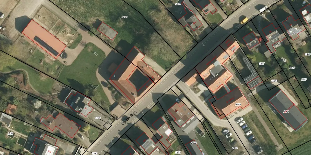 Het perceel waarop Op de Bies 45 staat heeft een oppervlakte van 2325 m². Dit is een zeer groot perceel. De perceeloppervlakte wordt geregistreerd door het Kadaster. Gedetailleerde informatie over de maten van dit perceel kunt u vinden in het rapport Kadastrale kaart met maatvoering van Op de Bies 45.
