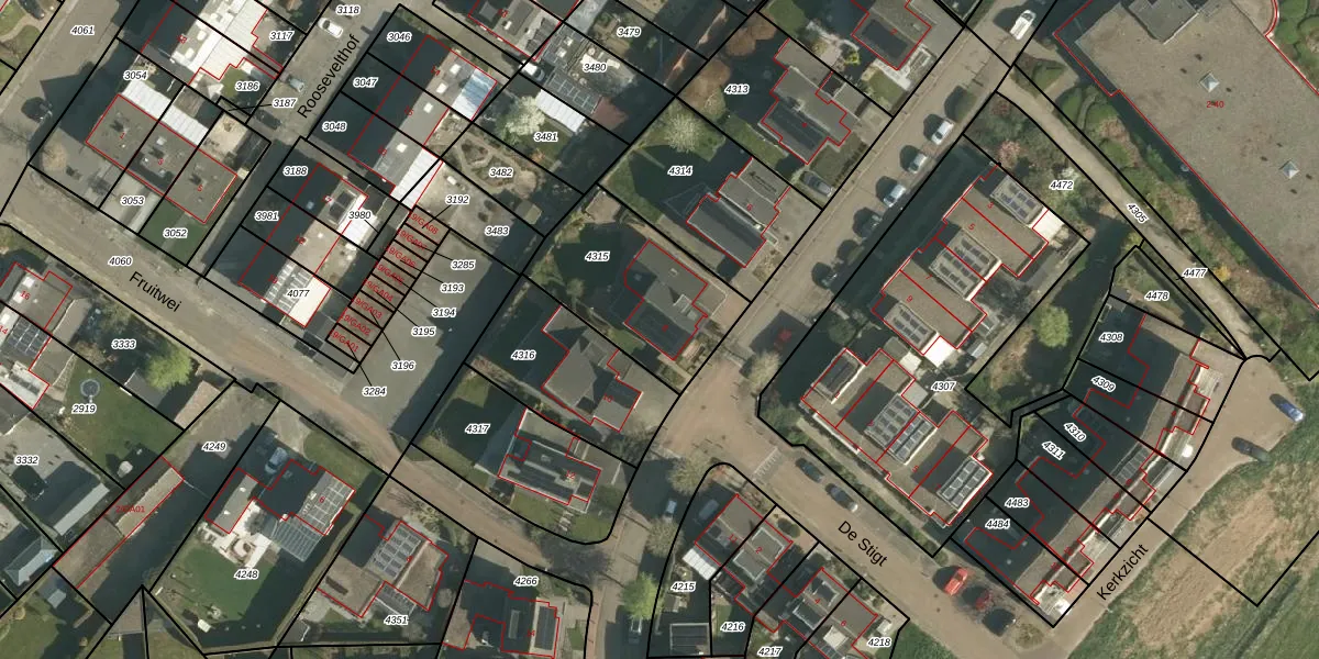 Gebruik de zoekbalk of klik op een perceel voor informatie over de adressen binnen dit perceel.