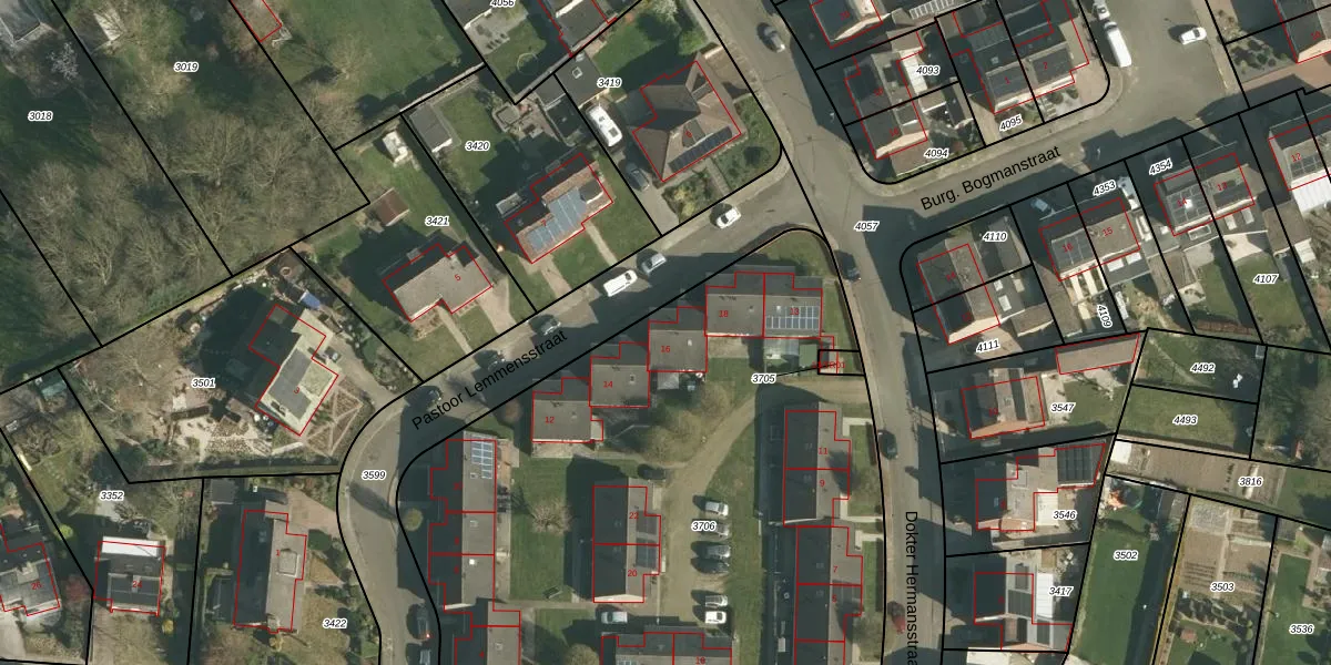 Het perceel waarop Pastoor Lemmensstraat 16 staat heeft een oppervlakte van 4386 m². Dit is een zeer groot perceel. De perceeloppervlakte wordt geregistreerd door het Kadaster. Gedetailleerde informatie over de maten van dit perceel kunt u vinden in het rapport Kadastrale kaart met maatvoering van Pastoor Lemmensstraat 16.