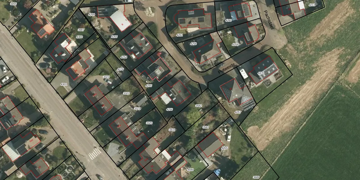 Het perceel waarop Putweide 14 staat heeft een oppervlakte van 445 m². Dit is een groot perceel. De perceeloppervlakte wordt geregistreerd door het Kadaster. Gedetailleerde informatie over de maten van dit perceel kunt u vinden in het rapport Kadastrale kaart met maatvoering van Putweide 14.