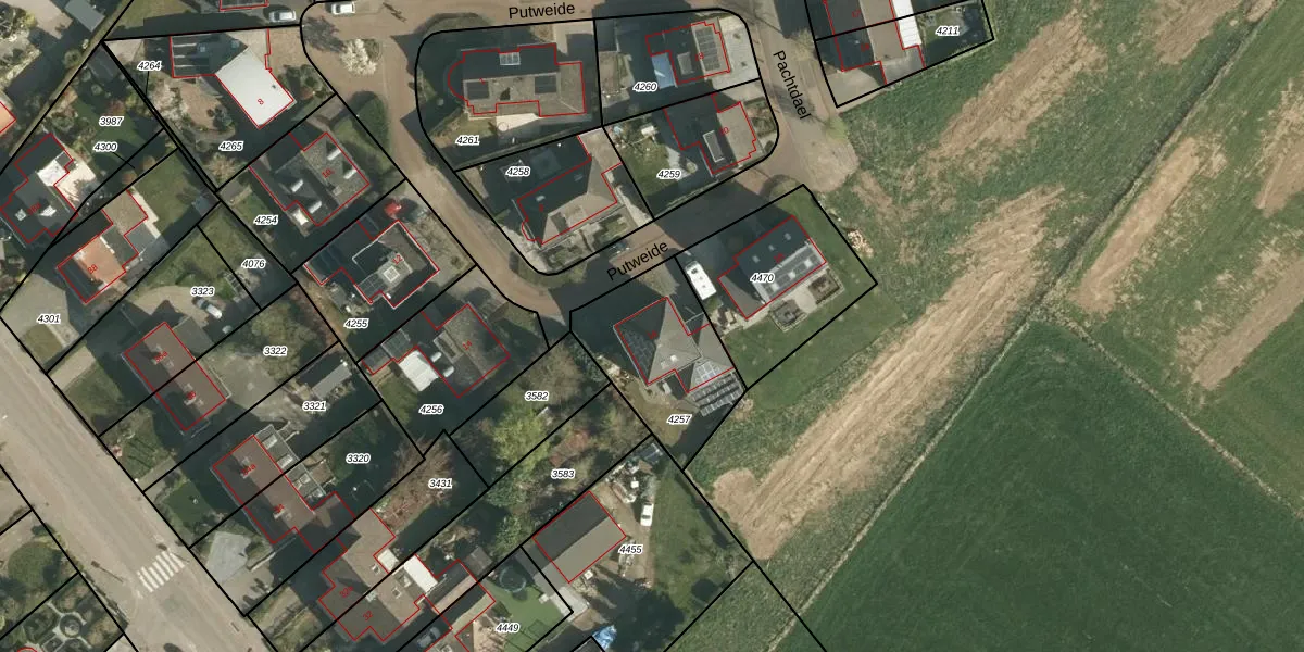 Het perceel waarop Putweide 16 staat heeft een oppervlakte van 465 m². Dit is een groot perceel. De perceeloppervlakte wordt geregistreerd door het Kadaster. Gedetailleerde informatie over de maten van dit perceel kunt u vinden in het rapport Kadastrale kaart met maatvoering van Putweide 16.