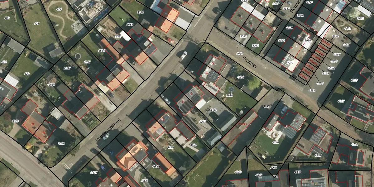 Het perceel waarop Rooseveltstraat 12 staat heeft een oppervlakte van 445 m². Dit is een groot perceel. De perceeloppervlakte wordt geregistreerd door het Kadaster. Gedetailleerde informatie over de maten van dit perceel kunt u vinden in het rapport Kadastrale kaart met maatvoering van Rooseveltstraat 12.