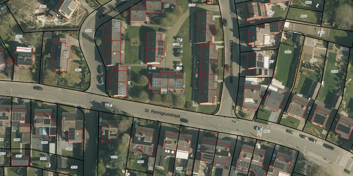 Het perceel waarop St. Remigiusstraat 16 staat heeft een oppervlakte van 4386 m². Dit is een zeer groot perceel. De perceeloppervlakte wordt geregistreerd door het Kadaster. Gedetailleerde informatie over de maten van dit perceel kunt u vinden in het rapport Kadastrale kaart met maatvoering van St. Remigiusstraat 16.