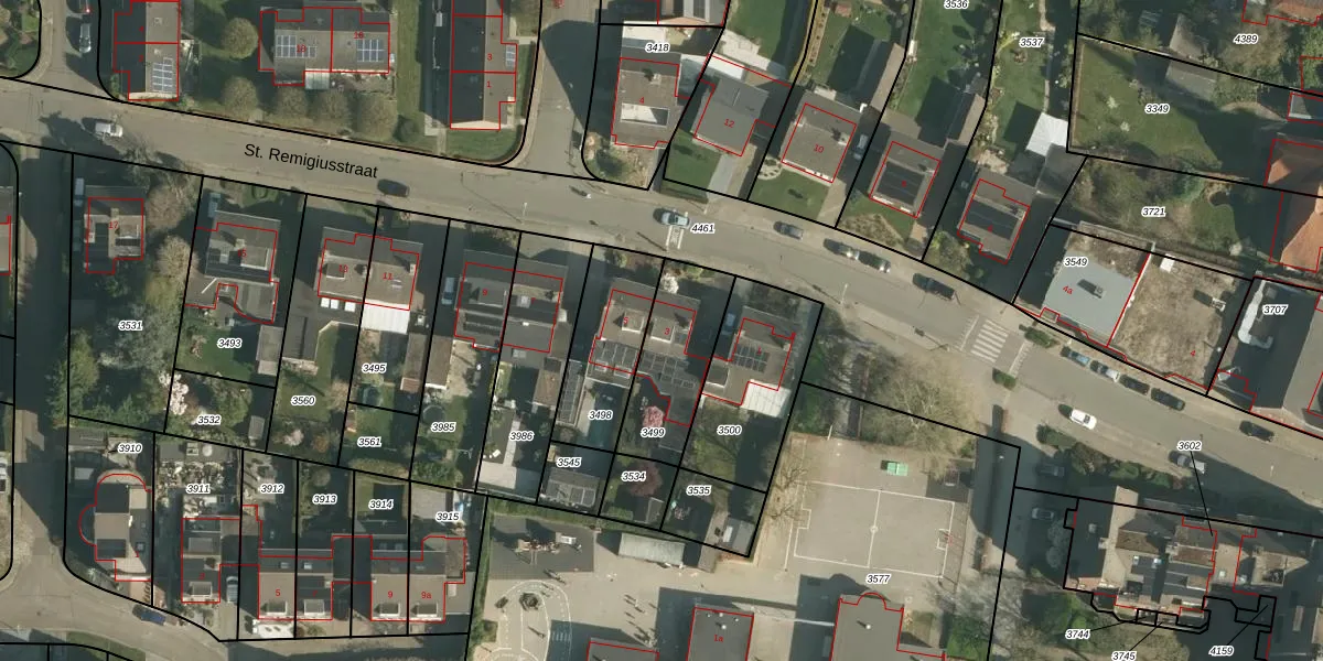 St. Remigiusstraat 3 is gelegen op kadastraal perceel SMT00A3499. Deze kadastrale aanduiding is uniek en wordt gebruikt door het Kadaster om eigendomsrechten en andere zakelijke rechten vast te leggen. Het perceel maakt onderdeel uit van de kadastrale gemeente Schimmert.