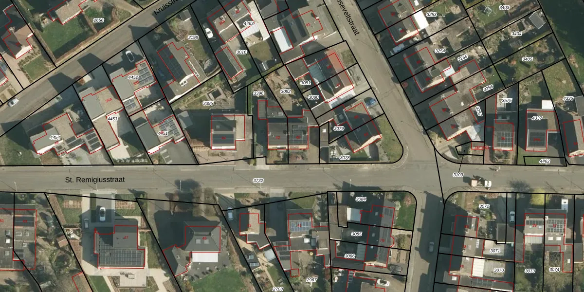 Het perceel waarop St. Remigiusstraat 40 staat heeft een oppervlakte van 326 m². Dit is een groot perceel. De perceeloppervlakte wordt geregistreerd door het Kadaster. Gedetailleerde informatie over de maten van dit perceel kunt u vinden in het rapport Kadastrale kaart met maatvoering van St. Remigiusstraat 40.