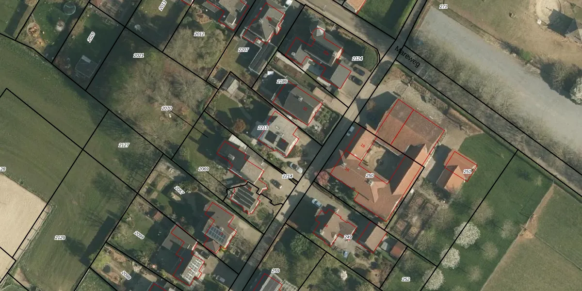 Het perceel waarop Struik 13 staat heeft een oppervlakte van 645 m². Dit is een groot perceel. De perceeloppervlakte wordt geregistreerd door het Kadaster. Gedetailleerde informatie over de maten van dit perceel kunt u vinden in het rapport Kadastrale kaart met maatvoering van Struik 13.