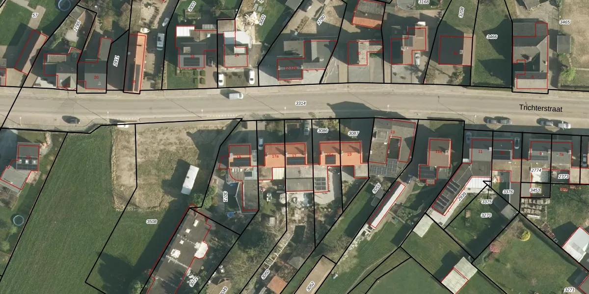 Trichterstraat 17 is gelegen op kadastraal perceel SMT00D3050. Deze kadastrale aanduiding is uniek en wordt gebruikt door het Kadaster om eigendomsrechten en andere zakelijke rechten vast te leggen. Het perceel maakt onderdeel uit van de kadastrale gemeente Schimmert.