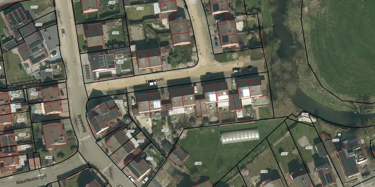Hanewei 41 is gelegen op kadastraal perceel SCH02C1587. Deze kadastrale aanduiding is uniek en wordt gebruikt door het Kadaster om eigendomsrechten en andere zakelijke rechten vast te leggen. Het perceel maakt onderdeel uit van de kadastrale gemeente Schin op Geul.