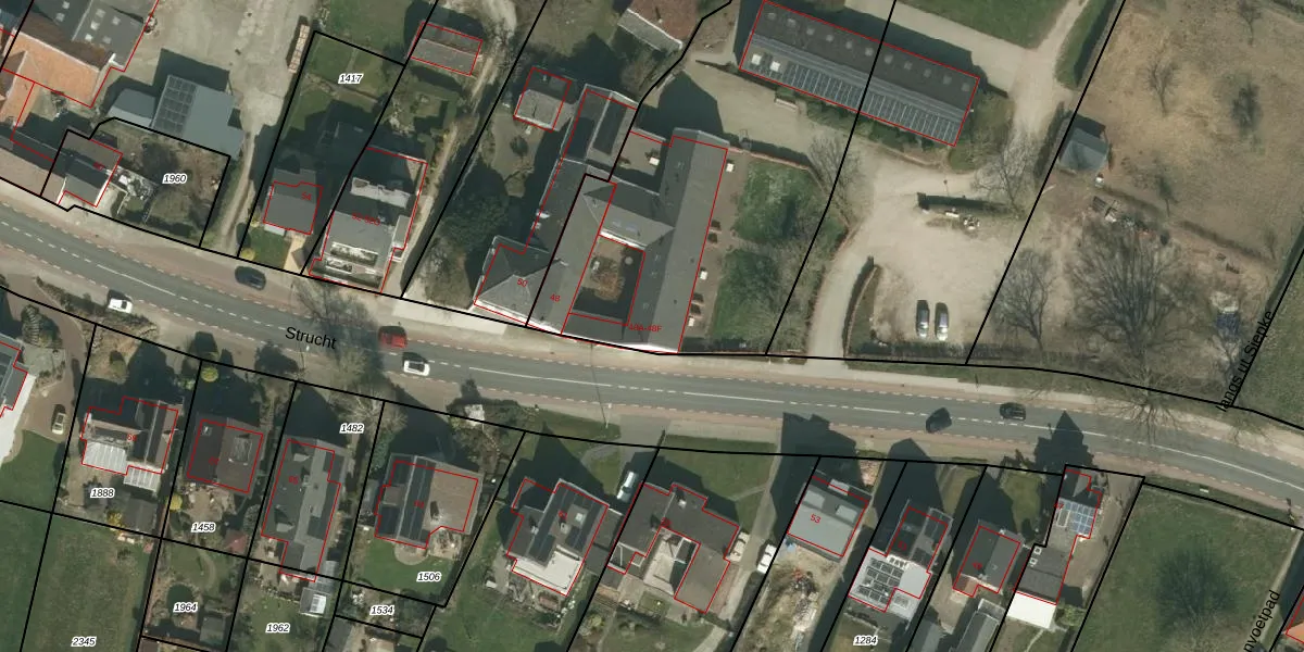Strucht 48-A is gelegen op kadastraal perceel SCH02C2000. Deze kadastrale aanduiding is uniek en wordt gebruikt door het Kadaster om eigendomsrechten en andere zakelijke rechten vast te leggen. Het perceel maakt onderdeel uit van de kadastrale gemeente Schin op Geul.