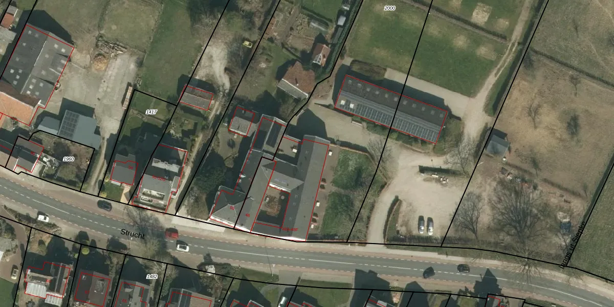 Strucht 48-C is gelegen op kadastraal perceel SCH02C2000. Deze kadastrale aanduiding is uniek en wordt gebruikt door het Kadaster om eigendomsrechten en andere zakelijke rechten vast te leggen. Het perceel maakt onderdeel uit van de kadastrale gemeente Schin op Geul.