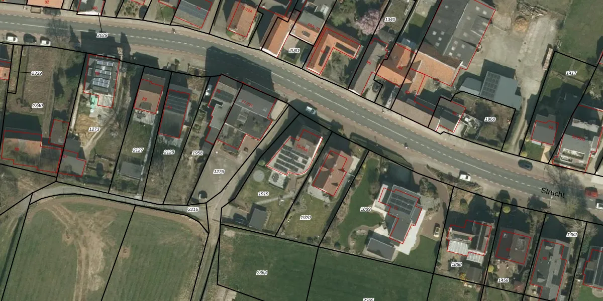 Strucht 75-A is gelegen op kadastraal perceel SCH02C1919. Deze kadastrale aanduiding is uniek en wordt gebruikt door het Kadaster om eigendomsrechten en andere zakelijke rechten vast te leggen. Het perceel maakt onderdeel uit van de kadastrale gemeente Schin op Geul.