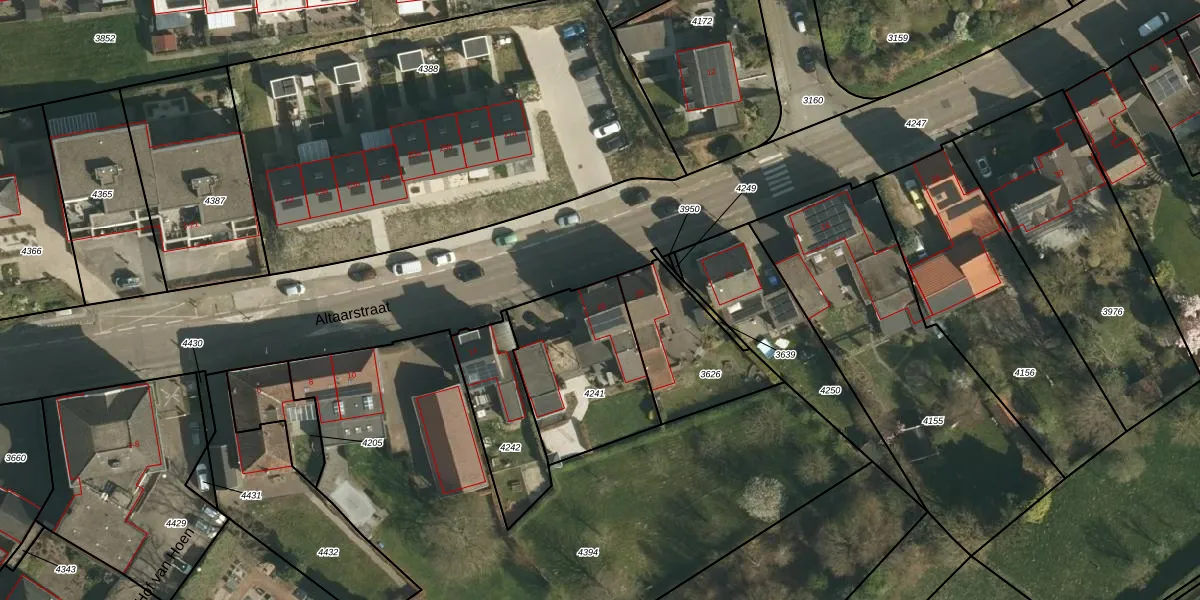 Altaarstraat 18 is gelegen op kadastraal perceel SNN00C4241. Deze kadastrale aanduiding is uniek en wordt gebruikt door het Kadaster om eigendomsrechten en andere zakelijke rechten vast te leggen. Het perceel maakt onderdeel uit van de kadastrale gemeente Schinnen.