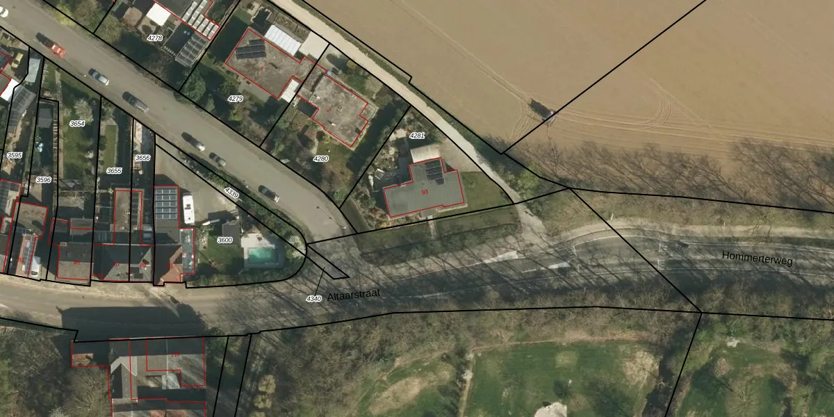 Altaarstraat 93 is gelegen op kadastraal perceel SNN00C4281. Deze kadastrale aanduiding is uniek en wordt gebruikt door het Kadaster om eigendomsrechten en andere zakelijke rechten vast te leggen. Het perceel maakt onderdeel uit van de kadastrale gemeente Schinnen.