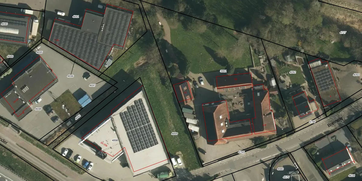 Het perceel waarop Breinder 5-C staat heeft een oppervlakte van 4330 m². Dit is een zeer groot perceel. De perceeloppervlakte wordt geregistreerd door het Kadaster. Gedetailleerde informatie over de maten van dit perceel kunt u vinden in het rapport Kadastrale kaart met maatvoering van Breinder 5-C.