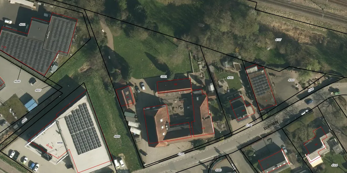 Het perceel waarop Breinder 5-B staat heeft een oppervlakte van 4330 m². Dit is een zeer groot perceel. De perceeloppervlakte wordt geregistreerd door het Kadaster. Gedetailleerde informatie over de maten van dit perceel kunt u vinden in het rapport Kadastrale kaart met maatvoering van Breinder 5-B.