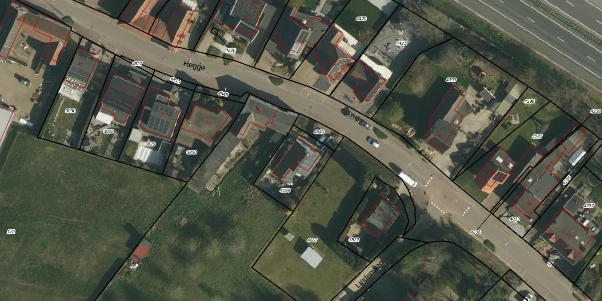 Het perceel waarop Hegge 21 staat heeft een oppervlakte van 385 m². Dit is een groot perceel. De perceeloppervlakte wordt geregistreerd door het Kadaster. Gedetailleerde informatie over de maten van dit perceel kunt u vinden in het rapport Kadastrale kaart met maatvoering van Hegge 21.