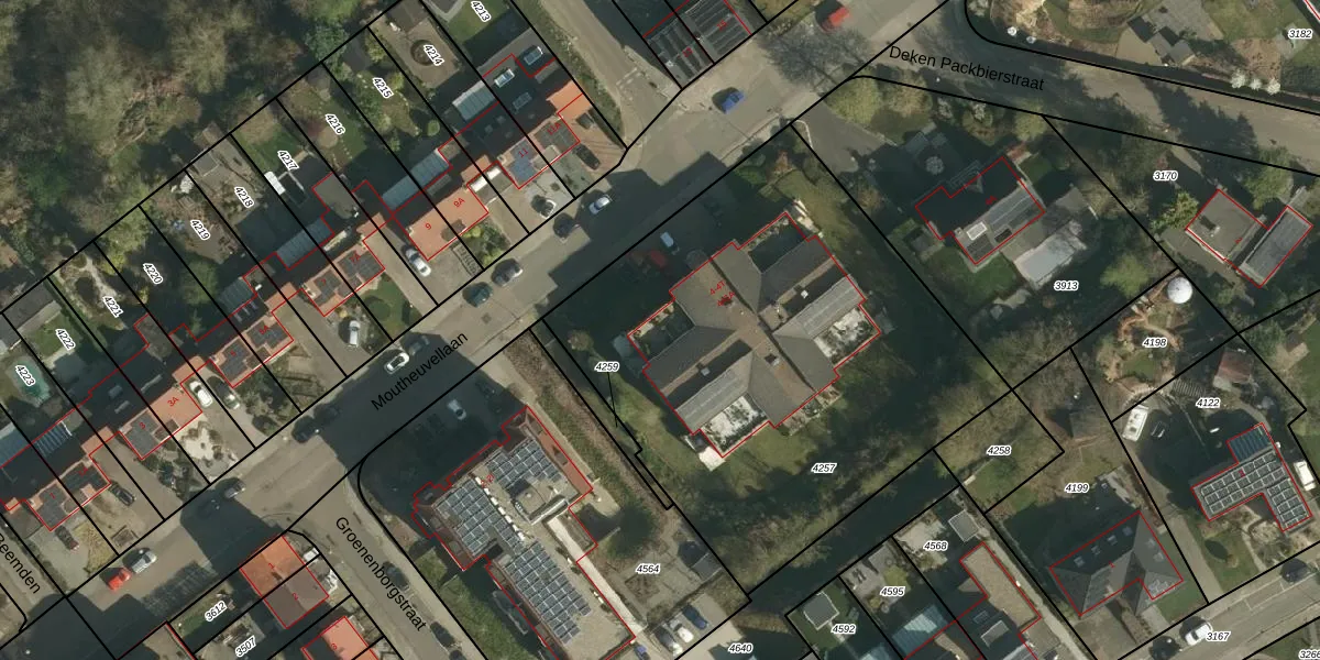 Het perceel waarop Moutheuvellaan 4 staat heeft een oppervlakte van 2527 m². Dit is een zeer groot perceel. De perceeloppervlakte wordt geregistreerd door het Kadaster. Gedetailleerde informatie over de maten van dit perceel kunt u vinden in het rapport Kadastrale kaart met maatvoering van Moutheuvellaan 4.