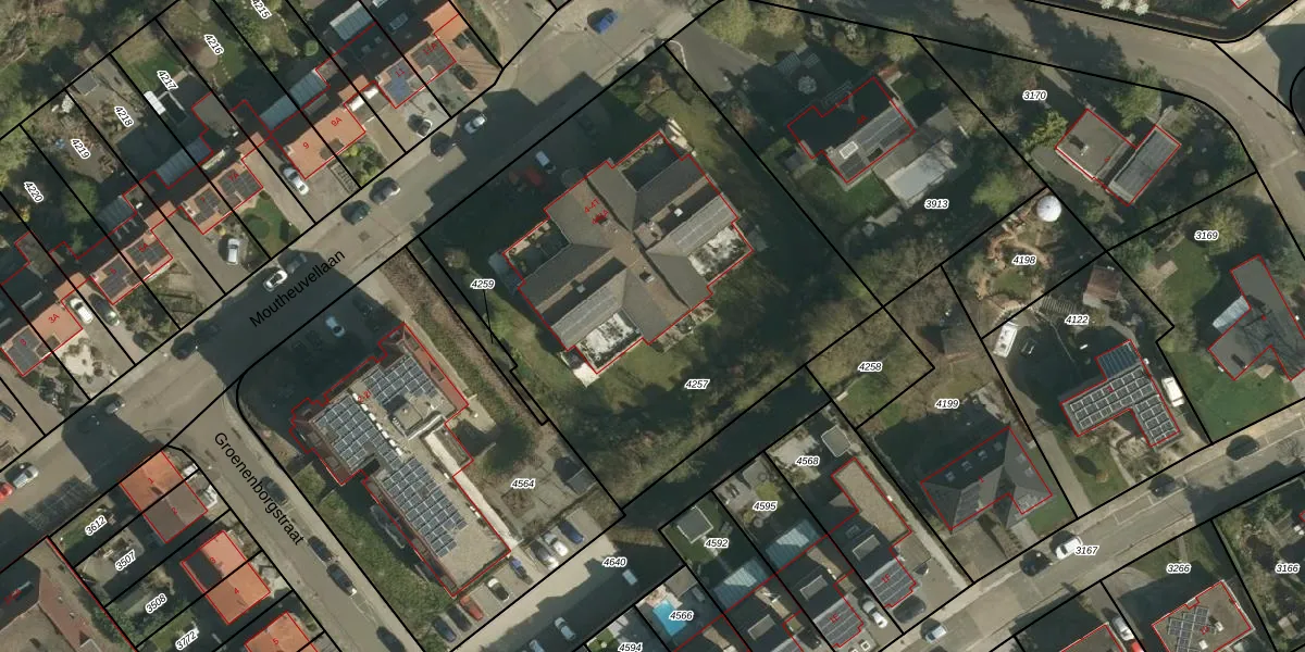 Het perceel waarop Moutheuvellaan 4-T staat heeft een oppervlakte van 2527 m². Dit is een zeer groot perceel. De perceeloppervlakte wordt geregistreerd door het Kadaster. Gedetailleerde informatie over de maten van dit perceel kunt u vinden in het rapport Kadastrale kaart met maatvoering van Moutheuvellaan 4-T.