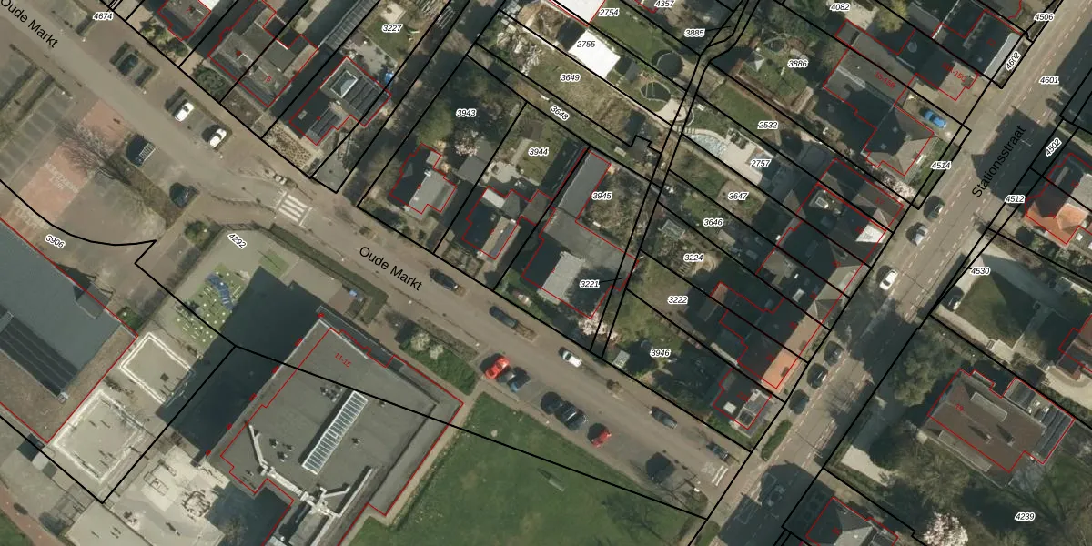 Het perceel waarop Oude Markt 1 staat heeft een oppervlakte van 582 m². Dit is een groot perceel. De perceeloppervlakte wordt geregistreerd door het Kadaster. Gedetailleerde informatie over de maten van dit perceel kunt u vinden in het rapport Kadastrale kaart met maatvoering van Oude Markt 1.