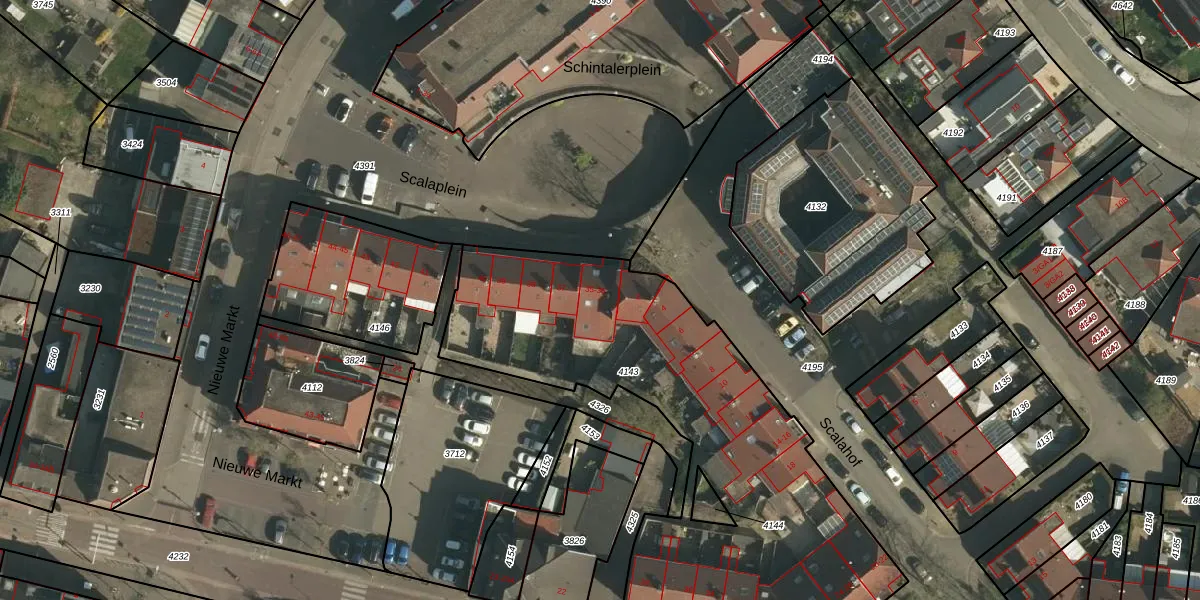 Scalaplein 35 is gelegen op kadastraal perceel SNN00C4143. Deze kadastrale aanduiding is uniek en wordt gebruikt door het Kadaster om eigendomsrechten en andere zakelijke rechten vast te leggen. Het perceel maakt onderdeel uit van de kadastrale gemeente Schinnen.