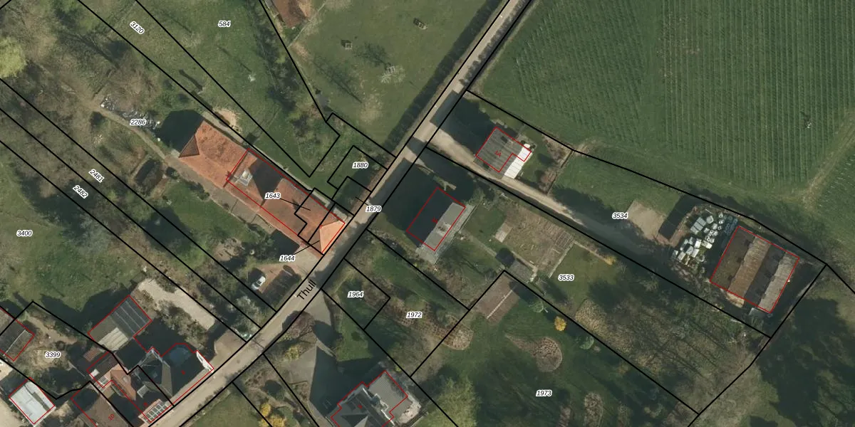 Het perceel waarop Thull 3-A staat heeft een oppervlakte van 2015 m². Dit is een zeer groot perceel. De perceeloppervlakte wordt geregistreerd door het Kadaster. Gedetailleerde informatie over de maten van dit perceel kunt u vinden in het rapport Kadastrale kaart met maatvoering van Thull 3-A.