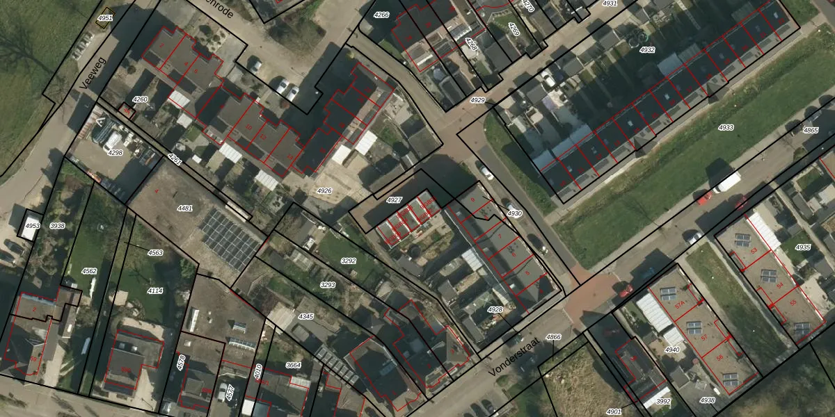 Het perceel waarop Vonderstraat 9-GB02 staat heeft een oppervlakte van 3399 m². Dit is een zeer groot perceel. De perceeloppervlakte wordt geregistreerd door het Kadaster. Gedetailleerde informatie over de maten van dit perceel kunt u vinden in het rapport Kadastrale kaart met maatvoering van Vonderstraat 9-GB02.