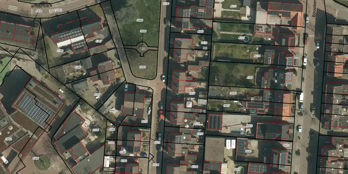 Het perceel waarop Beatrixstraat 11 staat heeft een oppervlakte van 855 m². Dit is een groot perceel. De perceeloppervlakte wordt geregistreerd door het Kadaster. Gedetailleerde informatie over de maten van dit perceel kunt u vinden in het rapport Kadastrale kaart met maatvoering van Beatrixstraat 11.
