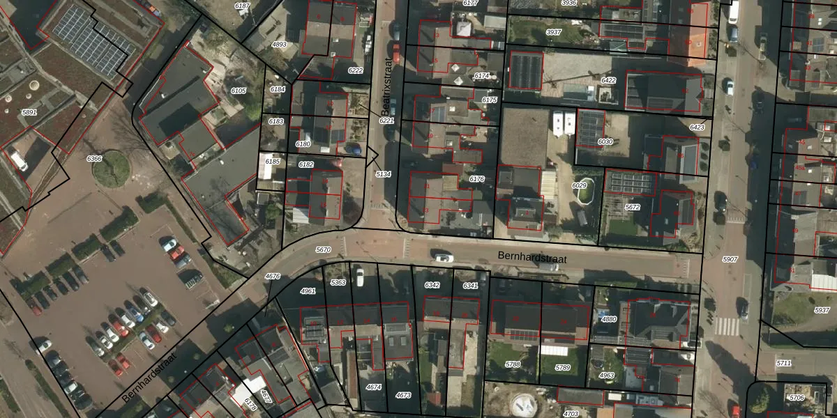 Het perceel waarop Beatrixstraat 23 staat heeft een oppervlakte van 619 m². Dit is een groot perceel. De perceeloppervlakte wordt geregistreerd door het Kadaster. Gedetailleerde informatie over de maten van dit perceel kunt u vinden in het rapport Kadastrale kaart met maatvoering van Beatrixstraat 23.