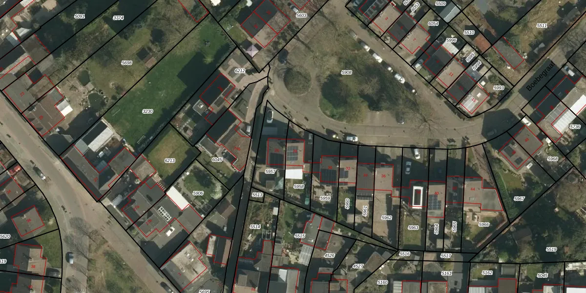 Het perceel waarop Boebegraaf 28 staat heeft een oppervlakte van 245 m². Dit is een middelgroot perceel. De perceeloppervlakte wordt geregistreerd door het Kadaster. Gedetailleerde informatie over de maten van dit perceel kunt u vinden in het rapport Kadastrale kaart met maatvoering van Boebegraaf 28.