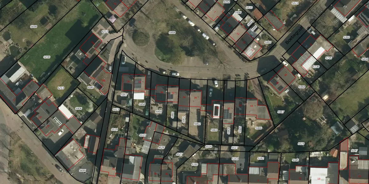 Het perceel waarop Boebegraaf 34 staat heeft een oppervlakte van 185 m². Dit is een middelgroot perceel. De perceeloppervlakte wordt geregistreerd door het Kadaster. Gedetailleerde informatie over de maten van dit perceel kunt u vinden in het rapport Kadastrale kaart met maatvoering van Boebegraaf 34.