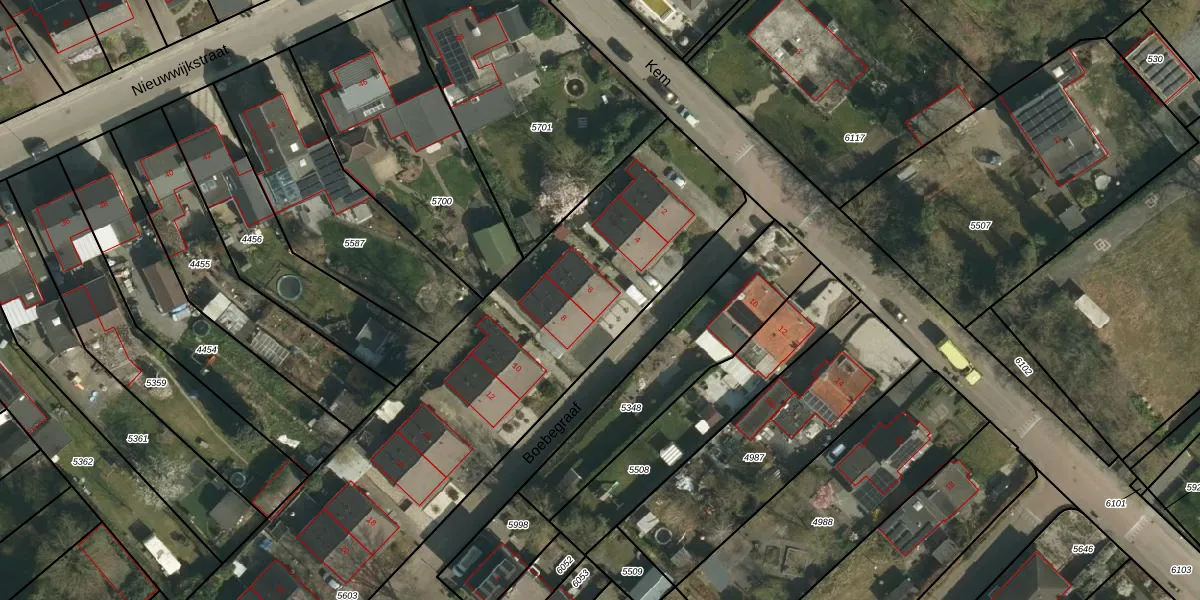 Het perceel waarop Boebegraaf 6 staat heeft een oppervlakte van 2388 m². Dit is een zeer groot perceel. De perceeloppervlakte wordt geregistreerd door het Kadaster. Gedetailleerde informatie over de maten van dit perceel kunt u vinden in het rapport Kadastrale kaart met maatvoering van Boebegraaf 6.