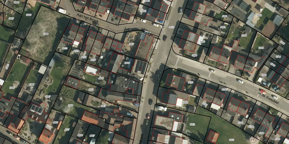 Broekstraat 13 is gelegen op kadastraal perceel SVD00A5899. Deze kadastrale aanduiding is uniek en wordt gebruikt door het Kadaster om eigendomsrechten en andere zakelijke rechten vast te leggen. Het perceel maakt onderdeel uit van de kadastrale gemeente Schinveld.