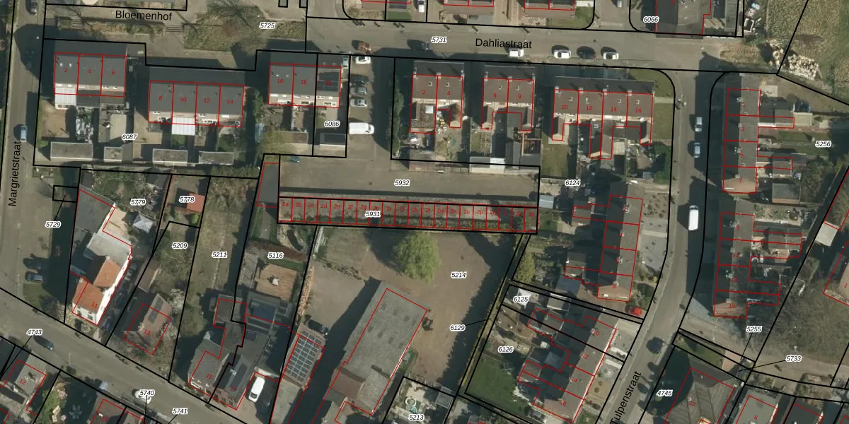 Dahliastraat 2-l is gelegen op kadastraal perceel SVD00B5931. Deze kadastrale aanduiding is uniek en wordt gebruikt door het Kadaster om eigendomsrechten en andere zakelijke rechten vast te leggen. Het perceel maakt onderdeel uit van de kadastrale gemeente Schinveld.