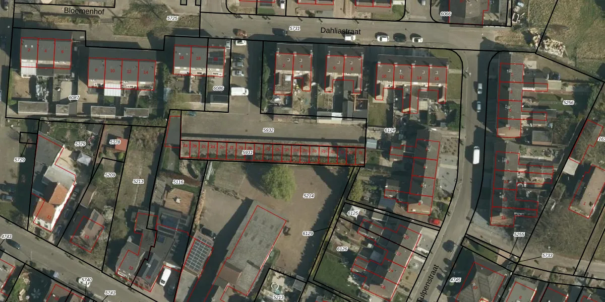 Dahliastraat 2-n is gelegen op kadastraal perceel SVD00B5931. Deze kadastrale aanduiding is uniek en wordt gebruikt door het Kadaster om eigendomsrechten en andere zakelijke rechten vast te leggen. Het perceel maakt onderdeel uit van de kadastrale gemeente Schinveld.