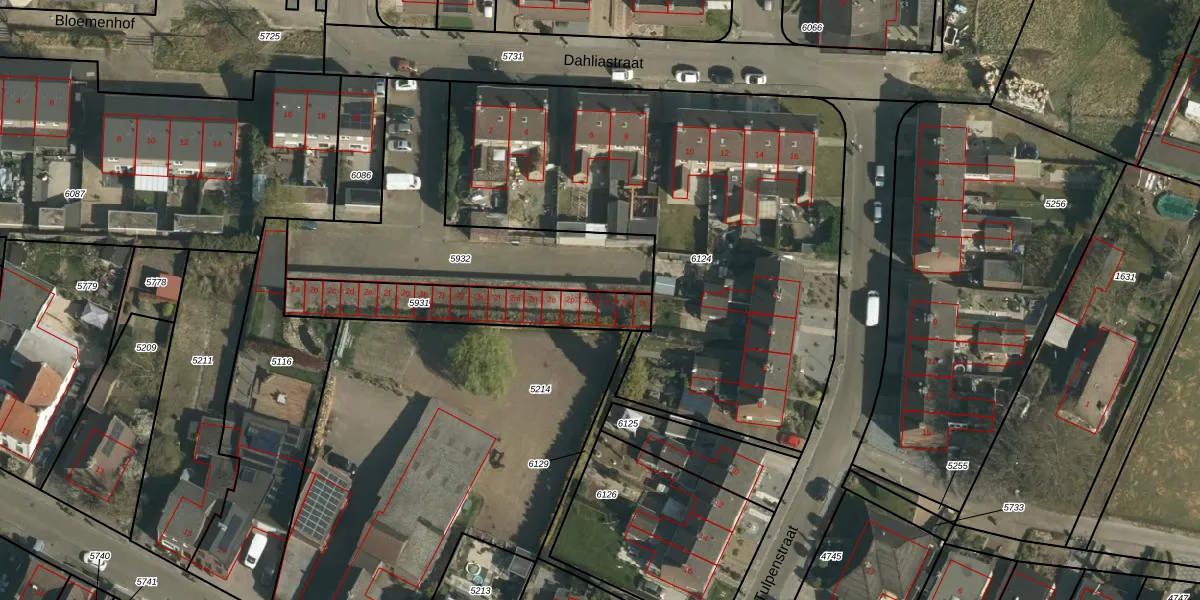 Dahliastraat 2-r is gelegen op kadastraal perceel SVD00B5931. Deze kadastrale aanduiding is uniek en wordt gebruikt door het Kadaster om eigendomsrechten en andere zakelijke rechten vast te leggen. Het perceel maakt onderdeel uit van de kadastrale gemeente Schinveld.