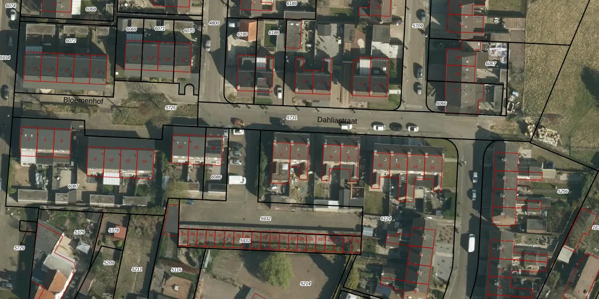Het perceel waarop Dahliastraat 4 staat heeft een oppervlakte van 2587 m². Dit is een zeer groot perceel. De perceeloppervlakte wordt geregistreerd door het Kadaster. Gedetailleerde informatie over de maten van dit perceel kunt u vinden in het rapport Kadastrale kaart met maatvoering van Dahliastraat 4.