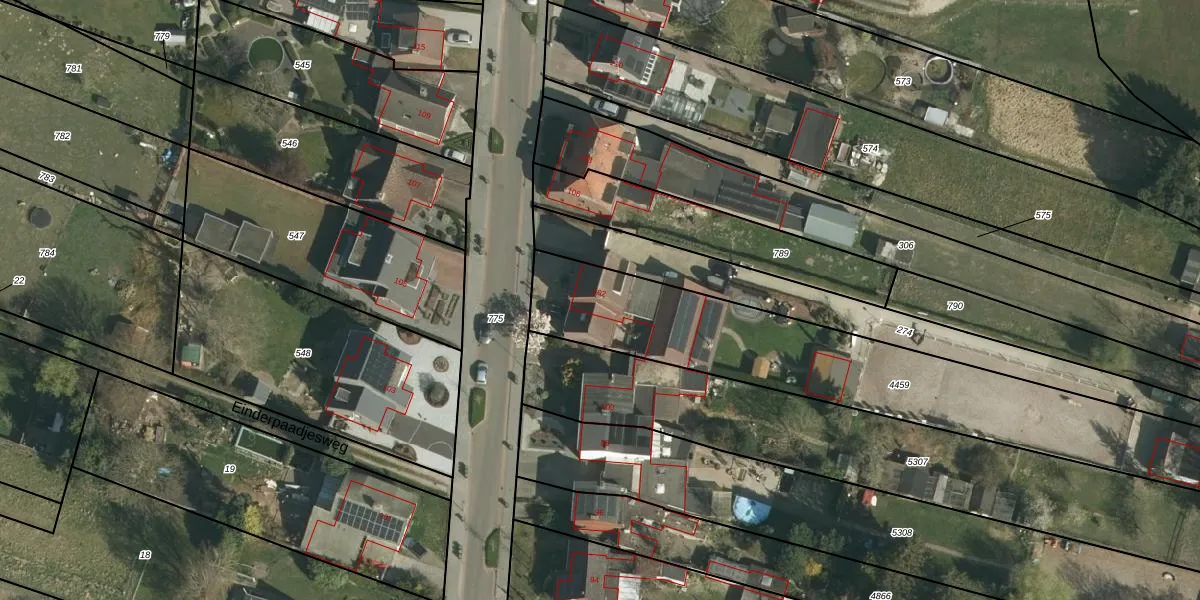 Het perceel waarop Eindstraat 102 staat heeft een oppervlakte van 1480 m². Dit is een zeer groot perceel. De perceeloppervlakte wordt geregistreerd door het Kadaster. Gedetailleerde informatie over de maten van dit perceel kunt u vinden in het rapport Kadastrale kaart met maatvoering van Eindstraat 102.