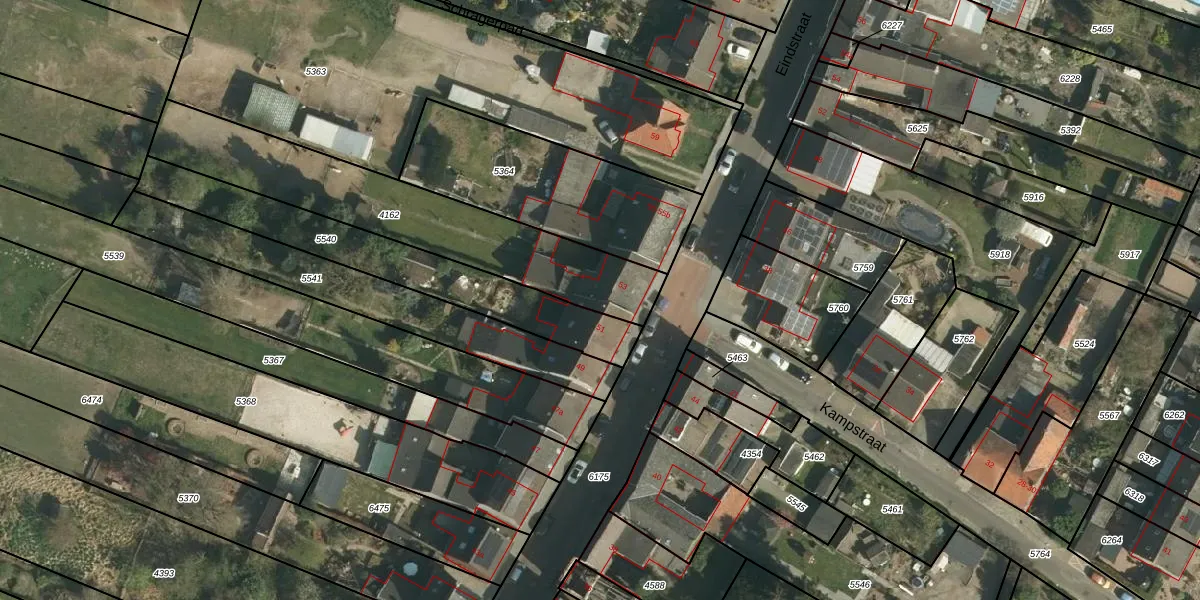 Eindstraat 53 is gelegen op kadastraal perceel SVD00A4162. Deze kadastrale aanduiding is uniek en wordt gebruikt door het Kadaster om eigendomsrechten en andere zakelijke rechten vast te leggen. Het perceel maakt onderdeel uit van de kadastrale gemeente Schinveld.